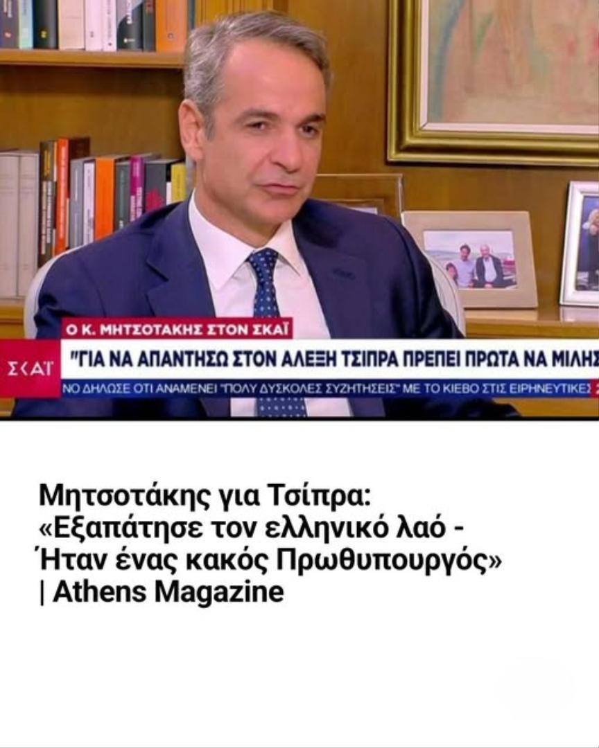 Σε μία συνέντευξη εφ’ όλης της ύλης στον τηλεοπτικό σταθμό ΣΚΑΪ, ο Πρωθυπουργός Κυριάκος Μητσοτάκης προχώρησε σε σκληρή κριτική κατά του πρώην πρωθυπουργού Αλέξη Τσίπρα, εξαπολύοντας ερωτήματα σχετικά με τις πρόσφατες δημόσιες παρεμβάσεις του και τον ρόλο του στην πρόσφατη πολιτική ιστορία της χώρας.
