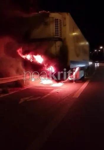 Σύμφωνα με το neakriti.gr, η φωτιά εκδηλώθηκε στο ψυγείο του φορτηγού, το οποίο μετέφερε κηπευτικά και είχε προορισμό το λιμάνι, ενώ ο οδηγός αντέδρασε άμεσα: αποσύνδεσε τον τράκτορα και τον απομάκρυνε πριν προλάβουν οι φλόγες να επεκταθούν, αποτρέποντας έτσι μια πολύ πιο σοβαρή εξέλιξη.