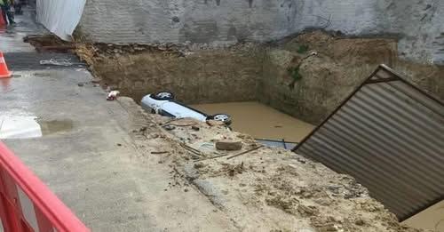 Επιβατικό αυτοκίνητο που ήταν σταθμευμένο στην άκρη οικοπέδου στο οποίο είχε γίνει εκσκαφή για την ανέγερση οικοδομής, βρέθηκε στο κενό, όταν λόγω της παρατεταμένης βροχόπτωσης υποχώρησε μέρος του οδοστρώματος.