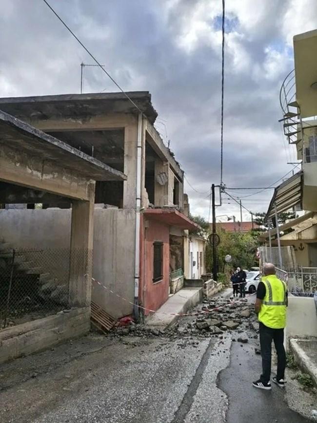 Στην οδό Σάκη Καράγιωργα, στην περιοχή Κορώνη Μαγαρά του Ηρακλείου, από τις βροχές προκλήθηκε πτώση τμήματος οικοδομής με αποτέλεσμα τα υλικά να βρεθούν στο δρόμο. Και σε αυτήν την περίπτωση η Δημοτική Αστυνομία με την Πολεοδομία απέκλεισαν το σημείο και ενημέρωσαν τους ιδιοκτήτες της οικοδομής για τις ενέργειες που θα πρέπει να κάνουν.
