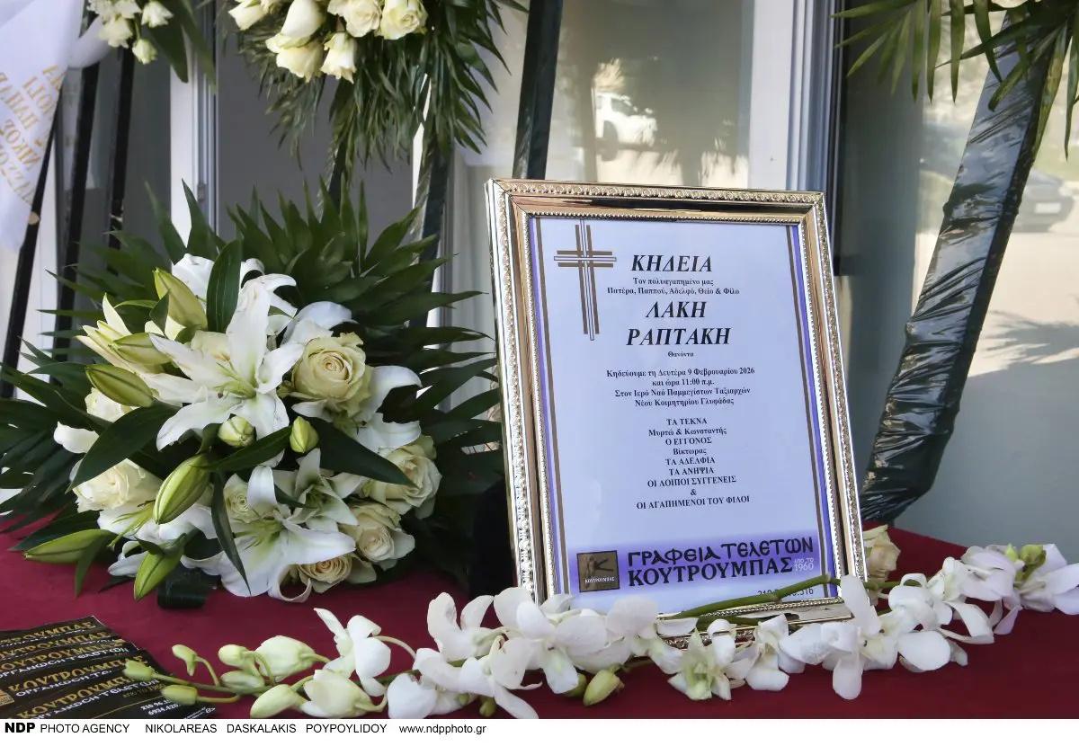 Αυτή την ώρα στο νεκροταφείο Γλυφάδας πραγματοποιείται η κηδεία του Λάκη Ραπτάκη. Ο επιχειρηματίας «έφυγε» αιφνίδια από τη ζωή στις 5 Φεβρουραίου σε ηλικία 79 ετών, στο σπίτι του στη Γλυφάδα, προδομένος από την καρδιά του.