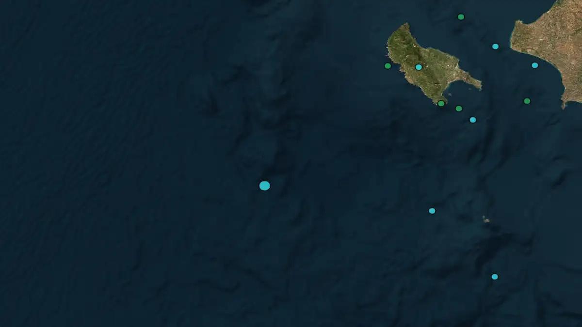 Ο σεισμός που έγινε ανοιχτά από τη Ζάκυνθο καταγράφηκε στις 3:34 μ.μ. της Πέμπτης.