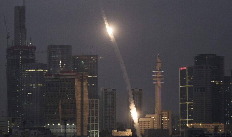 Israeli Iron Dome air defense system fires to intercept projectiles over Tel Aviv, Saturday, June 14, 2025. (AP Photo/Leo Correa)